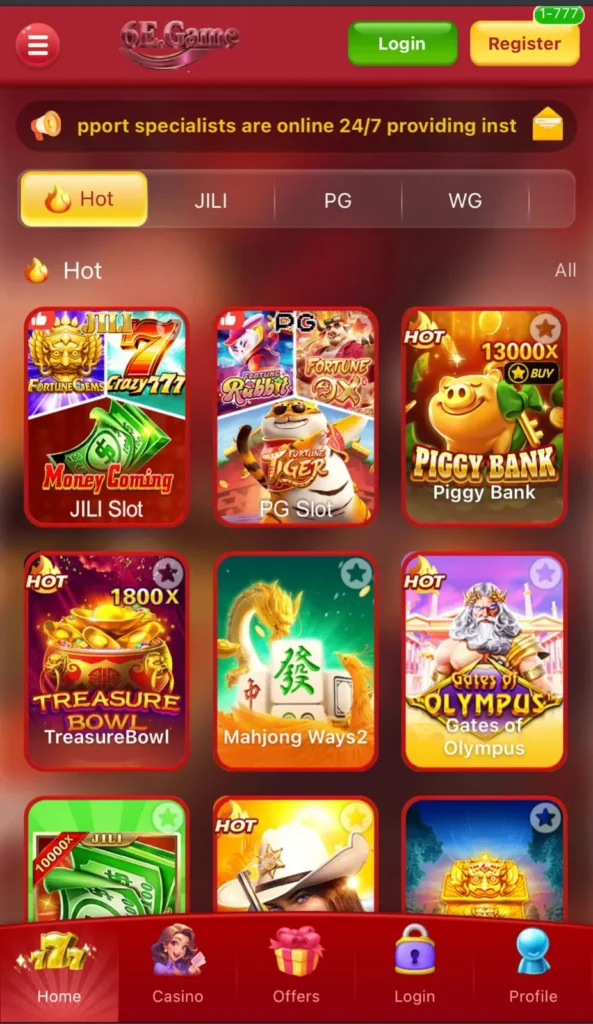 Players can participate in games using deposited funds and earn real money. 6E Game adds winnings directly to the in‑app wallet for use or withdrawal.