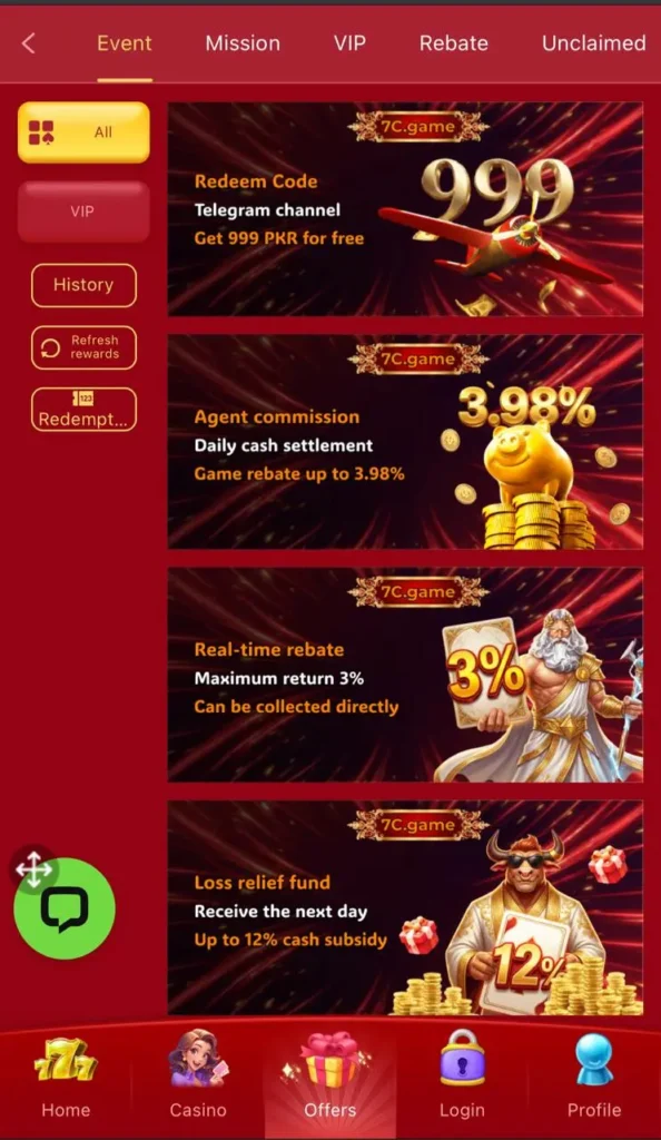 7C Game is a mobile-based gaming application that allows users to play different types of interactive games while earning real cash. It primarily includes number prediction games, color prediction challenges, card-based formats, mini-games, and slot-style games. Users create an account, deposit funds into their in-app wallet, and participate in game rounds to try and earn rewards. The app supports local wallets and bank transfers, making it convenient for Pakistani players. While it provides the potential to earn, outcomes depend on game results, so earnings are not guaranteed and should be approached responsibly.