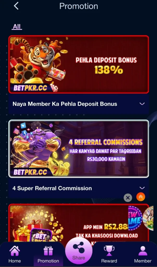 New users get a signup bonus to begin playing right away after installing. A brief tutorial detailing how to earn, deposit, withdraw, and recommend friends is provided by the app. Players may begin playing slots, card games, and the Infinity Spin right away thanks to the clear interface that offers both Urdu and English options.